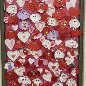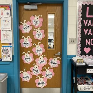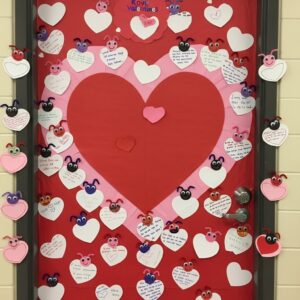 An interactive love bug door allows students to add something each day leading up to Valentine’s Day.