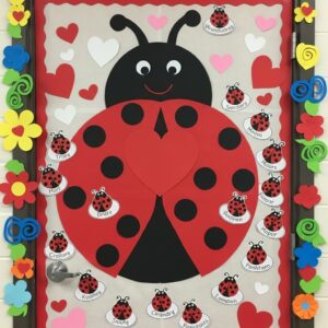 Love bug classroom door decorations also encourage student participation, teamwork, and festive spirit.