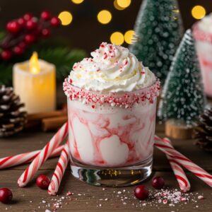 A creamy holiday twist on the classic White Russian with a festive peppermint flavor.