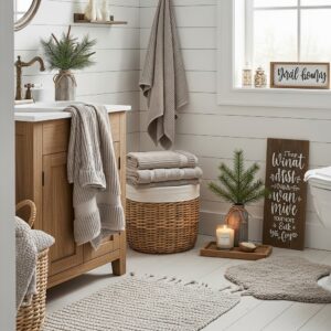 By combining natural materials, neutral colors, and cozy details, you can create a bathroom that feels inviting all winter long without overwhelming the space.