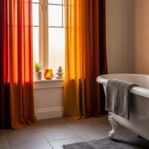 A fabric curtain with subtle warmth can make your bathroom feel softer and more inviting.