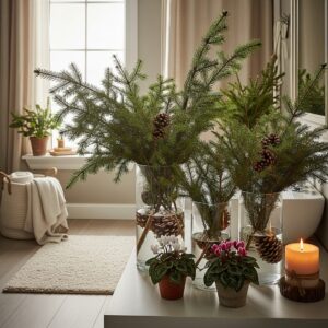 Bring in evergreen branches, pinecones, or winter plants in vases.