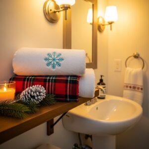Use towels with winter patterns or subtle designs such as snowflakes, pine branches, or plaid.