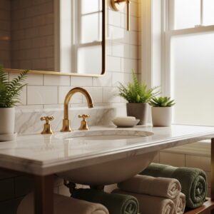 Incorporate warm metallic finishes like gold, copper, or bronze for faucets, knobs, or accessories.
