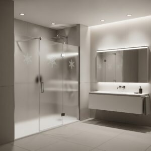 Frosted patterns can subtly mimic winter motifs, while maintaining a sleek, modern look that feels spacious and elegant.