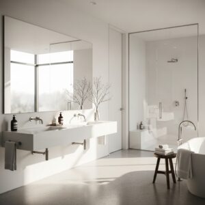 Sleek lines, minimalistic accents, and subtle winter elements can transform your bathroom into a contemporary winter retreat.