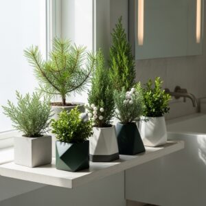Keep the plants in geometric planters to match the modern design, adding a touch of life without overpowering the space.
