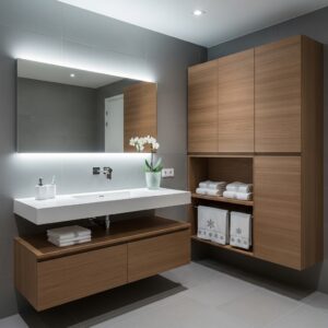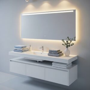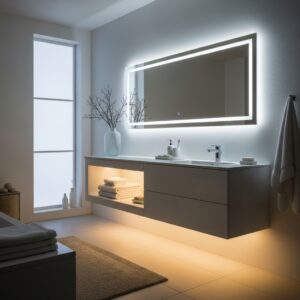 Install modern LED lighting under cabinets, around mirrors, or in niches.