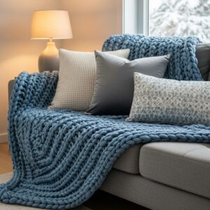 A chunky blue knit throw instantly makes your space feel snug. Drape it over your couch, armchair, or the foot of your bed.