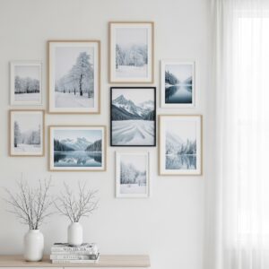 Change your existing wall art or frames to winter prints—snowy landscapes, cozy cabin illustrations, or abstract icy blues.