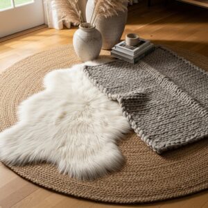 Layering rugs—like placing a soft faux fur rug on top of a woven or jute rug—adds warmth and visual interest.