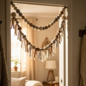 Replace traditional greenery with garlands made from wool, fabric strips, felt balls, or macramé.