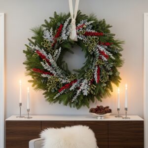 Choose styles with pine, berries, frosted leaves, or dried florals to match your aesthetic.