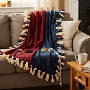 Make a no-sew fleece blanket by cutting fringes and tying knots along the edges.