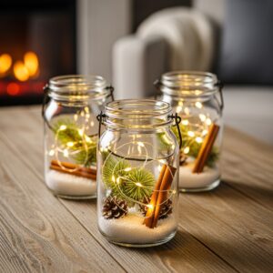 Add faux snow, pine sprigs, or cinnamon sticks for decoration.