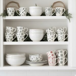 Swap out a few everyday dishes for winter-themed ones like snowflake mugs, red-and-white plates, or ceramic bowls with winter patterns.