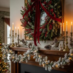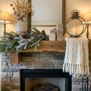 This layered effect adds depth and makes the mantle look full and inviting without needing too many other decorations.