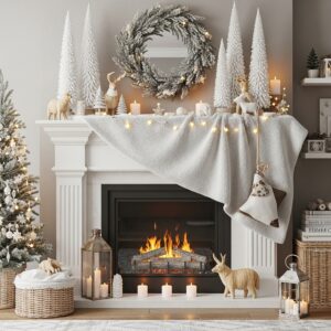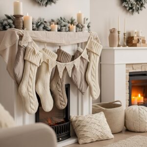 Add soft elements like knit stockings, chunky knit garlands, or fabric-covered decor pieces.
