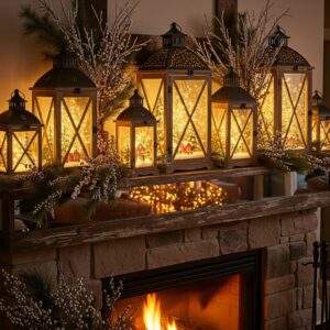 Place lanterns of different sizes on the mantle and fill them with warm fairy lights.