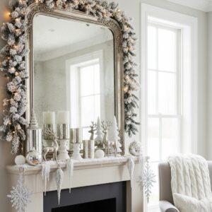 Pairing frosted elements with warm lights helps maintain the cozy feel while still embracing the winter theme.