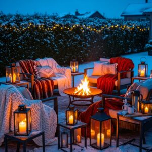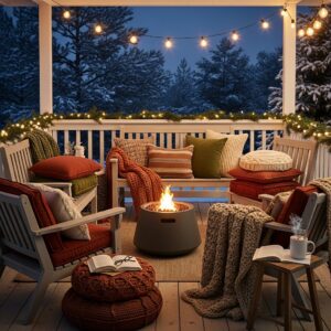 Use insulated or weatherproof materials for durability. Add cozy cushions or throws to chairs for comfort and style.