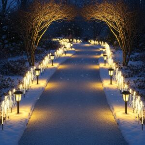 Line walkways with solar lanterns, LED stakes, or luminaries.