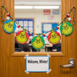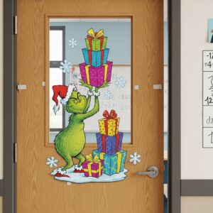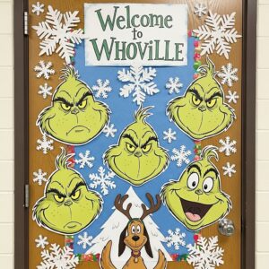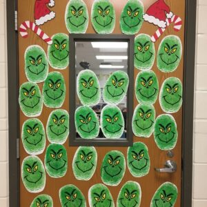One fun and engaging theme for classroom door decorations is the Grinch.