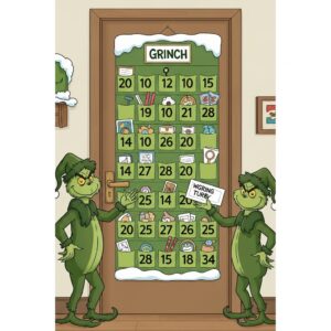 Add pockets or envelopes with fun activities or treats behind each date, using Grinch faces as markers.