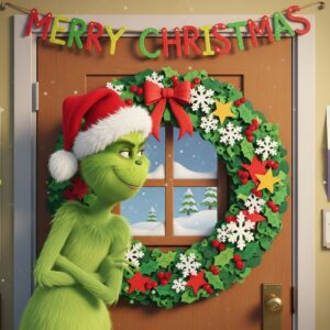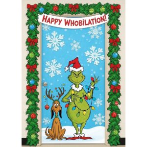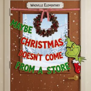Add a banner above the door with a famous Grinch quote, like “Maybe Christmas doesn’t come from a store.”