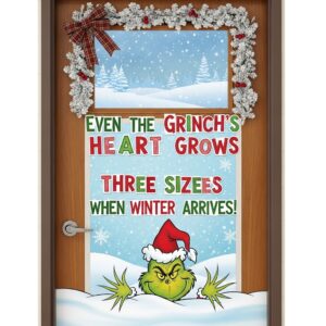 Grinch-themed winter door decorations are a playful and creative way to celebrate the season in classrooms.