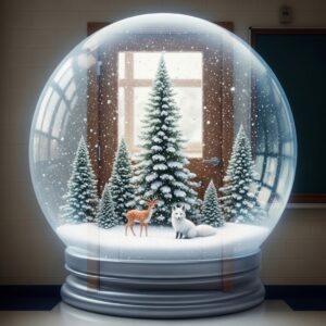Use a clear plastic sheet or paper to create the globe shape, and add winter scenery inside, like trees, animals, and tiny snowflakes.