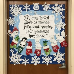 Design a door featuring a large winter-themed quote, such as “Let it Snow!” or “Winter Wishes for All.”