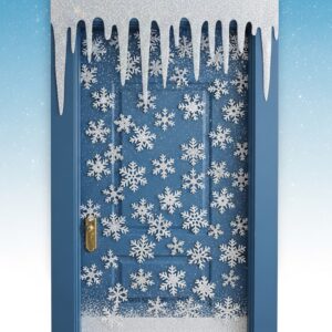 Decorate the door with sparkling paper icicles hanging down, along with glittery snowflakes.
