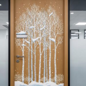 Decorating office doors doesn’t have to be over-the-top; even subtle winter touches can make a big impact.