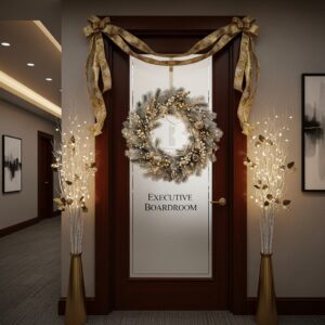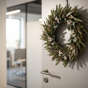 Winter door decorations for offices should enhance the space without distracting from productivity.
