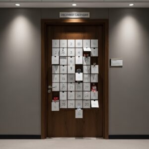 Turn the office door into a winter-themed calendar featuring important dates, deadlines, or milestones.