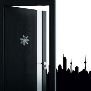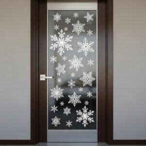 Use white or metallic snowflake decals arranged in a neat pattern across the door.