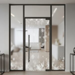 The soft, icy appearance reflects winter beautifully and adds privacy while keeping the décor subtle and modern.