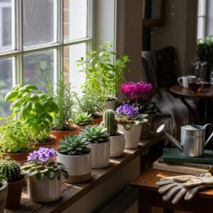 The natural light from windows ensures healthy growth even in winter, and you can rotate plants to catch maximum sunlight.