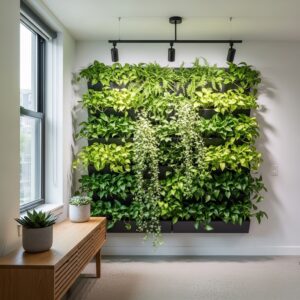 Use wall-mounted planters, shelves, or pockets to grow indoor plants like ferns, ivy, or pothos.