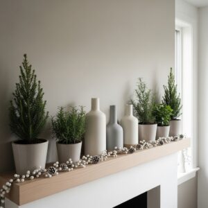 A few small potted faux plants or winter stems in ceramic vases keep your mantel feeling fresh without overwhelming it.