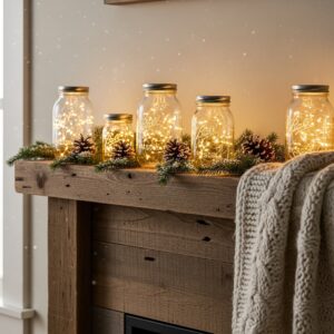 Fill mason jars with fairy lights or small LED candles and place them along your mantle.