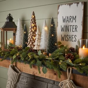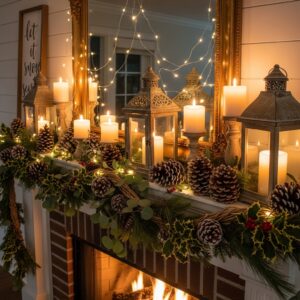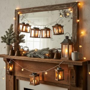 By mixing string lights, candles, lanterns, and reflective surfaces, your mantle becomes the perfect winter focal point for both everyday comfort and holiday gatherings.