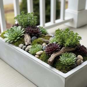 Cold-hardy succulents, such as hens-and-chicks or sedum, can survive winter while adding a modern, minimalist touch.