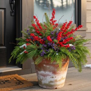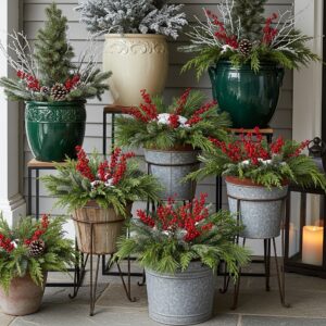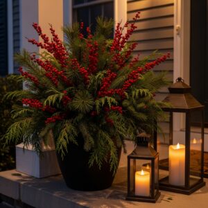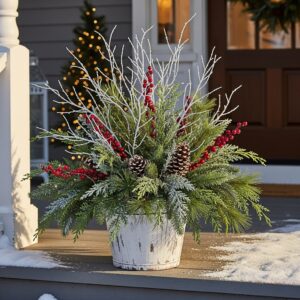 With the right planters and a mix of greenery, berries, branches, and subtle accents, you can create a warm, inviting, and stylish entryway that lasts through the season.