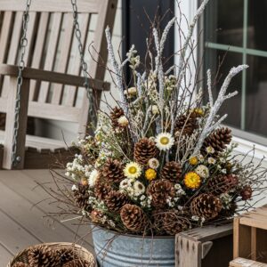 Experiment with textures, heights, and colors to make each arrangement uniquely yours, and enjoy a winter porch that continues to delight visitors long after the holidays have passed.