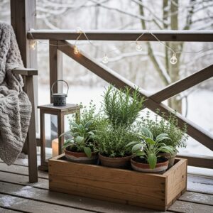 Grow hardy herbs like rosemary, thyme, or sage in your porch planters.