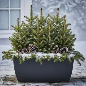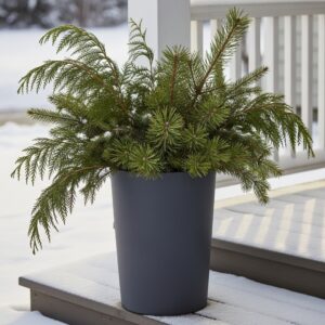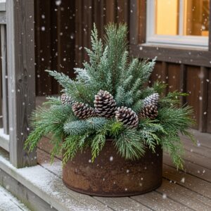 Combine pine, spruce, and cedar in a pot filled with soil or floral foam.