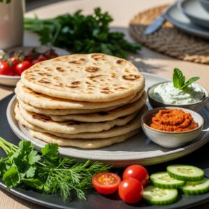 Simple, quick, and perfect for wraps, gyros, or serving with dips. These soft flatbreads cook on a stovetop instead of the oven.