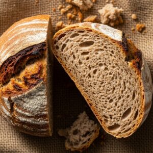 Instructions: Mix grains with warm water → add flour and yeast → knead → rise → bake at 375°F (190°C).